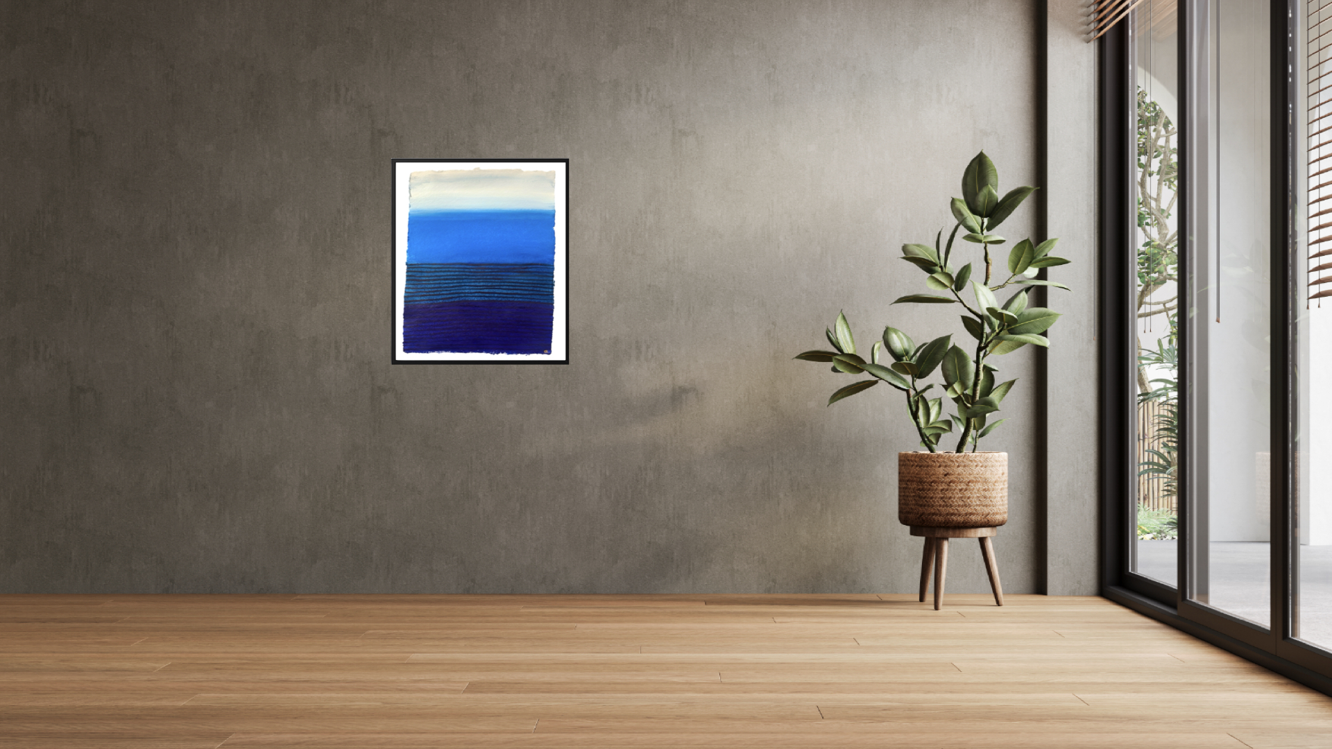 seamlessly combines traditional abstract painting with bold colours and intuitive marks, inviting viewers to contemplate the depths of human awareness.